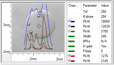Like most flow cytometer software, the standard FlowPilot software provides a single integrated signal measurement for each parameter of an object and these signals are used for analysis and sorting decisions. But most large objects are NOT uniform in terms of fluorescence or optical density. The need to analyze non-uniform objects was the inspiration for the creation of “Profiler” software.